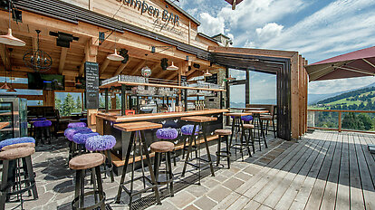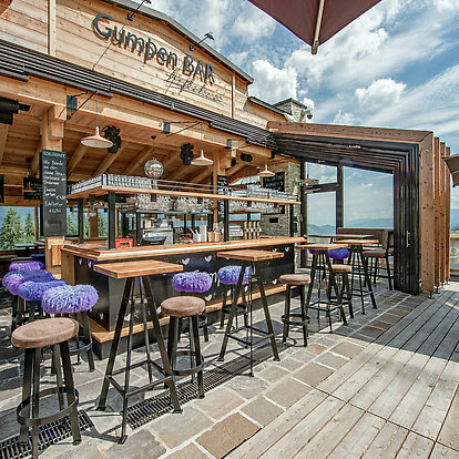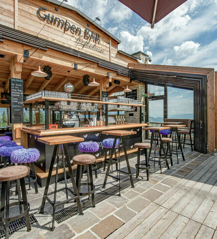 Direkt neben der Talstation des "Höfi Express I" befindet sich unsere Gumpen BAR. Genießen Sie im ersten Mazot der Region im Winter Ihre Skipausen oder Après Ski-Abende und im Sommer Ihre private Party oder Ihr Firmenevent.